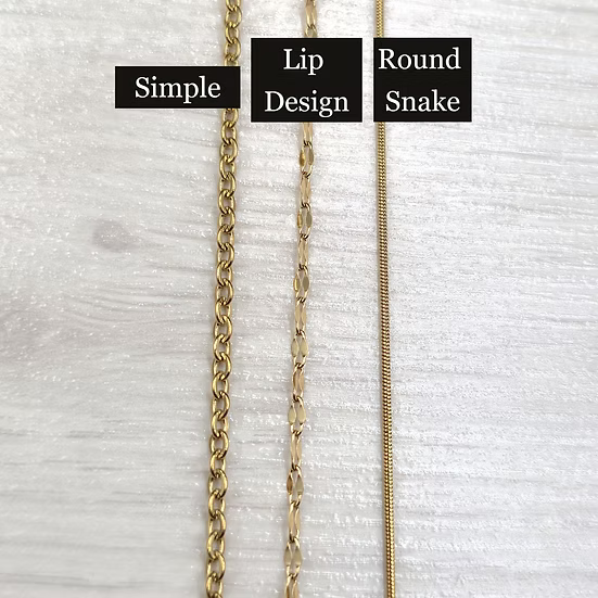 Choice of chain style and length: snake (45 cm), cable (50 cm), link (55 cm)
