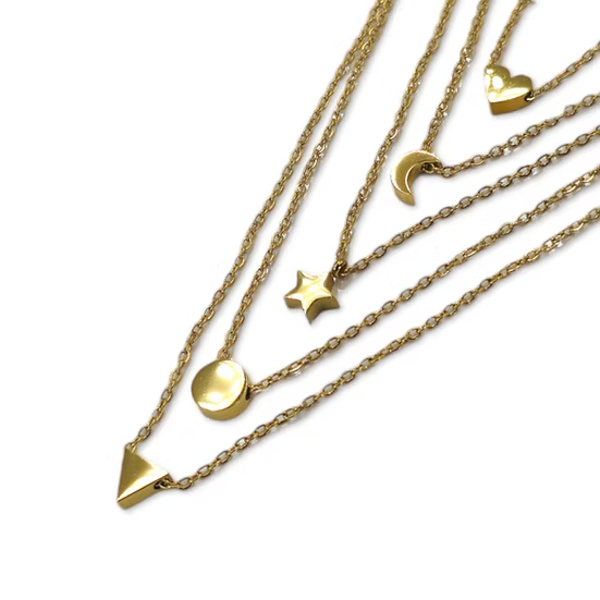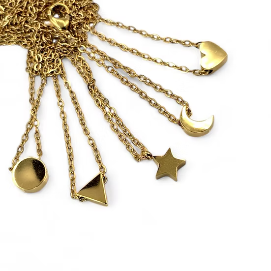 The My Little Secret Necklace is a small and elegant piece designed for everyday wear. The necklace name was inspired by shapes and forms that hold various symbolic meanings for people and cultures around the world. Crafted from 18K gold-plated stainless steel, it is both waterproof and hypoallergenic, offering durability and lasting shine.